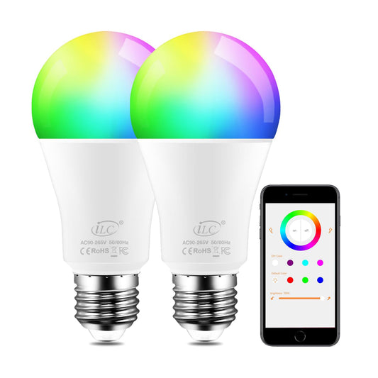 iLC Bombilla LED que cambia de color RGBW 2700K blanco cálido, controlada por aplicación, sincronización con música, regulable RGB multicolor equivalente a 70 W, tornillo Edison E26 (paquete de 2)