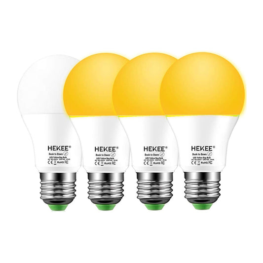 HEKEE Dusk to Dawn Light Bulbs A19 8W 720 Lumens, Outdoor Porch Lights, 60 Watt Equivalent, Amber LED Orange-Yellow Sensor Bulb, Security Bulb(Auto On/Off), E26 Screw Base(4 Pack)