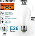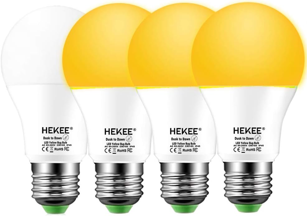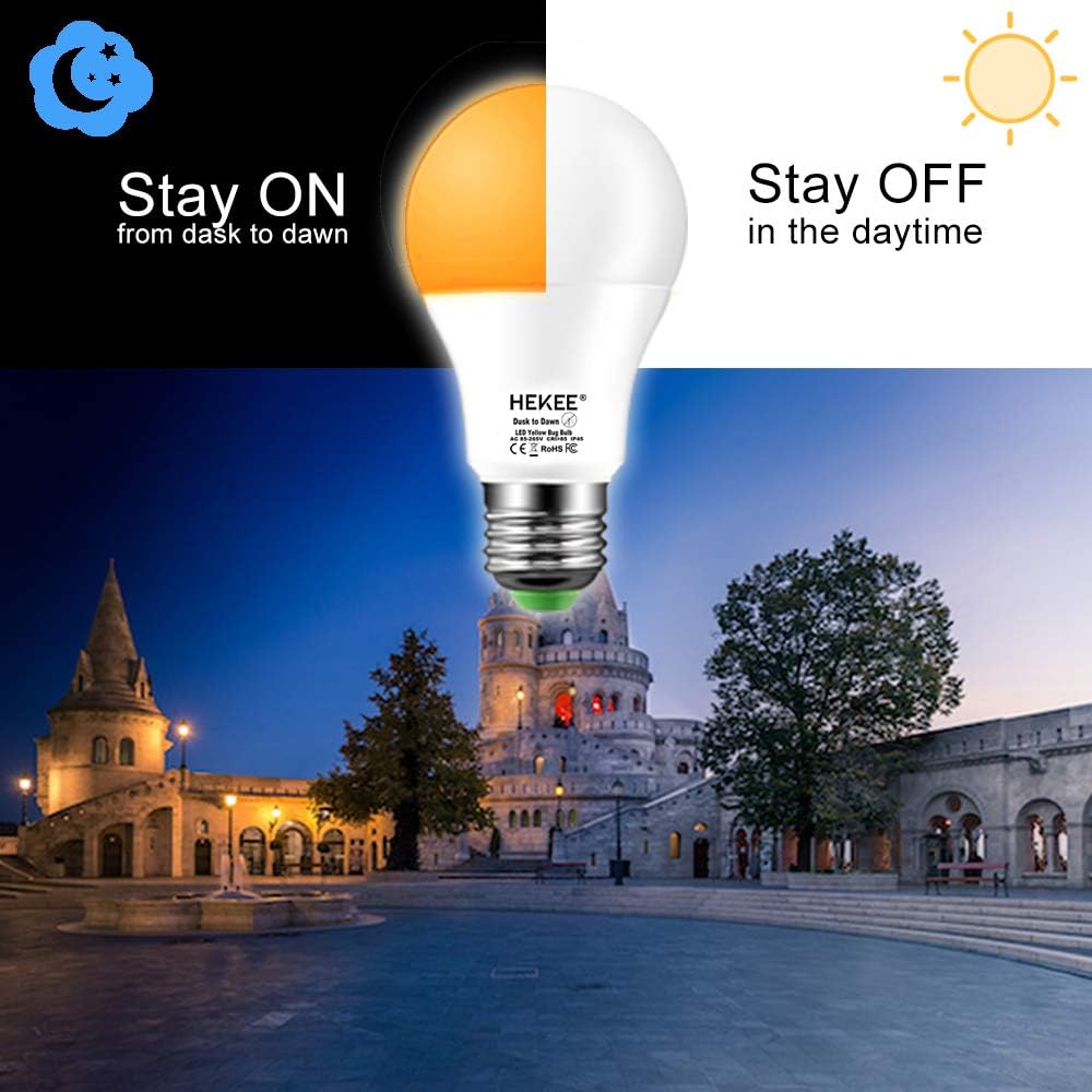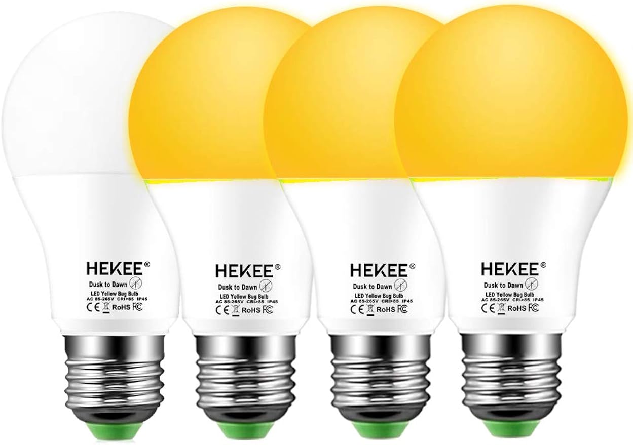 HEKEE Dusk to Dawn Light Bulbs A19 8W 720 Lumens, Outdoor Porch Lights, 60 Watt Equivalent, Amber LED Orange-Yellow Sensor Bulb, Security Bulb(Auto On/Off), E26 Screw Base(4 Pack)
