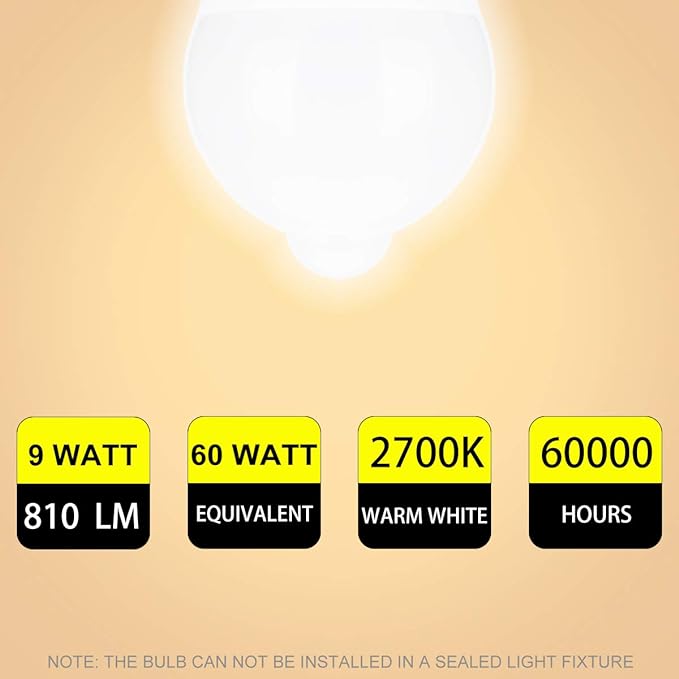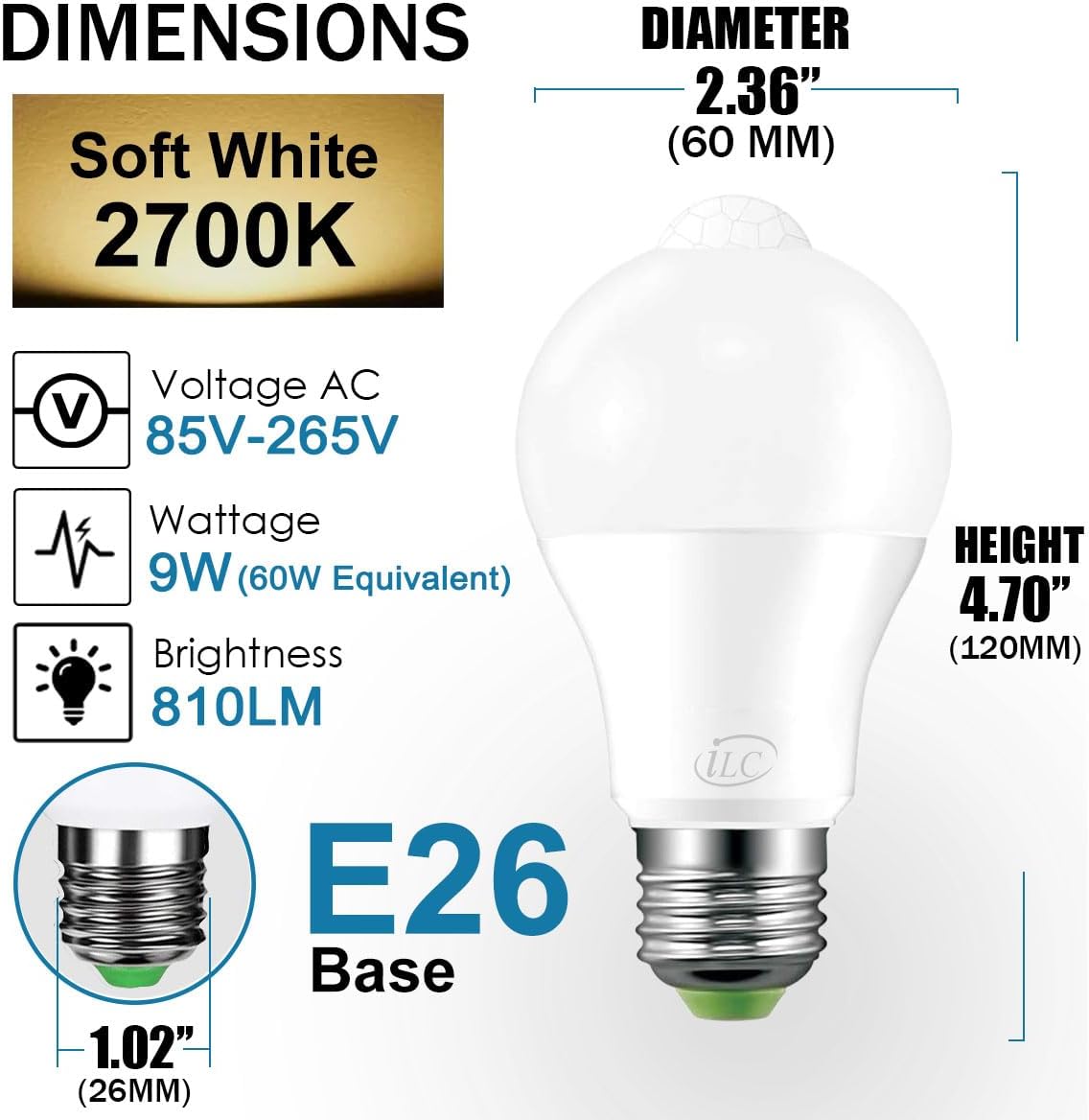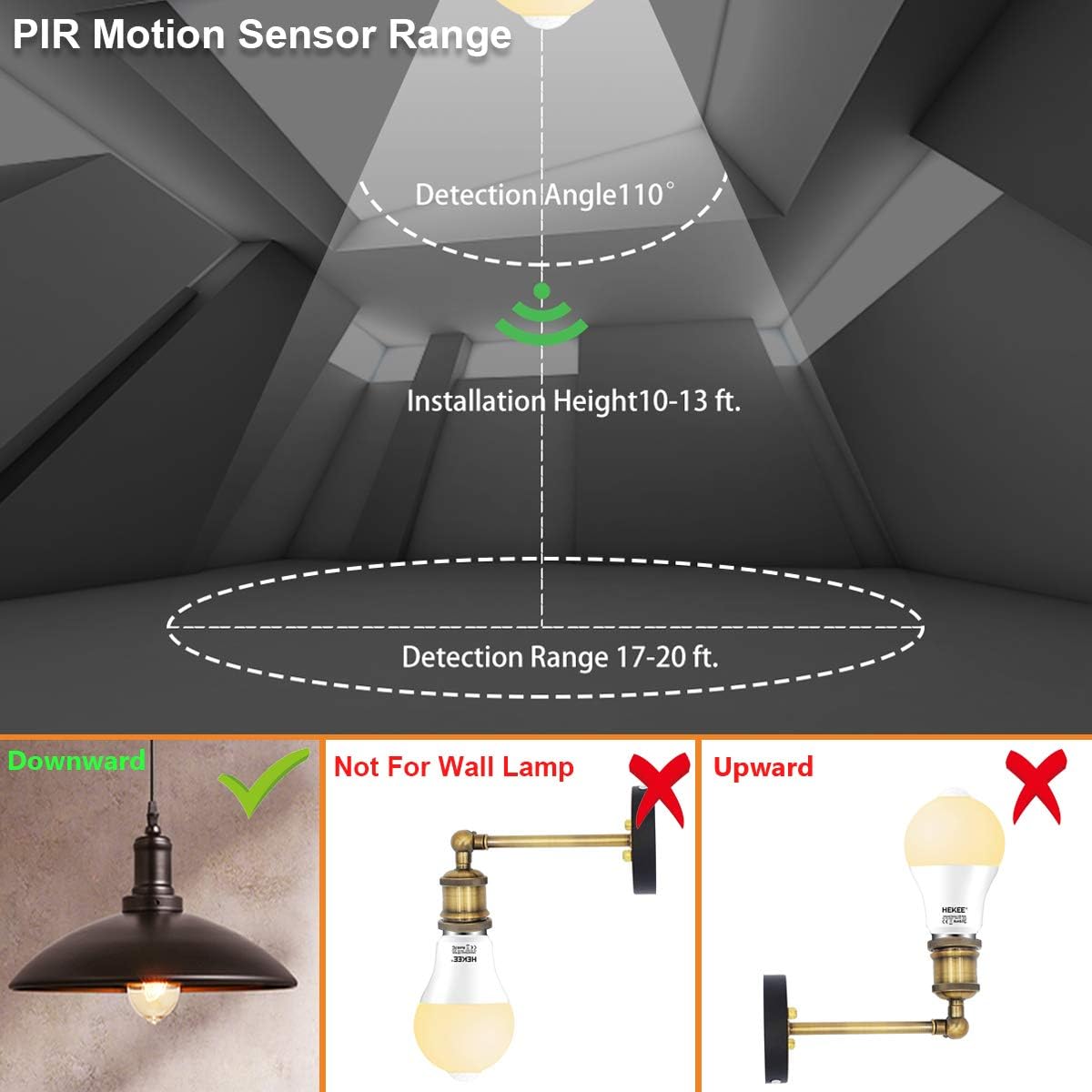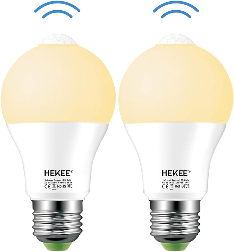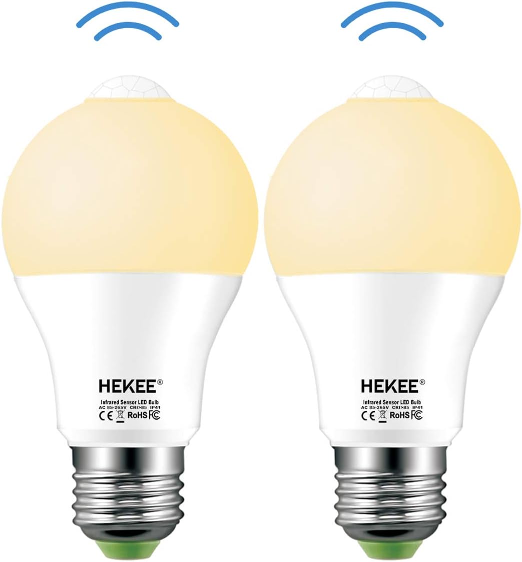 HEKEE Motion Sensor LED Light Bulb 9W A19 PIR Built-in IR 60W Equivalent Bright 810 Lumens E26 Base Warm White Bulbs (2 Packs)