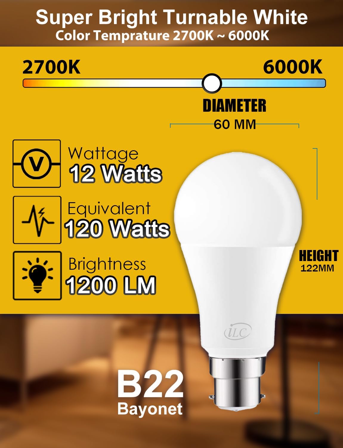 ILC Alexa Light Bulbs, 12W, Smart Light Bulb Work with Alexa, 2700K-6000K Warm White to Daylight Turnable, A19 E26 No Hub Required (6 Packs)