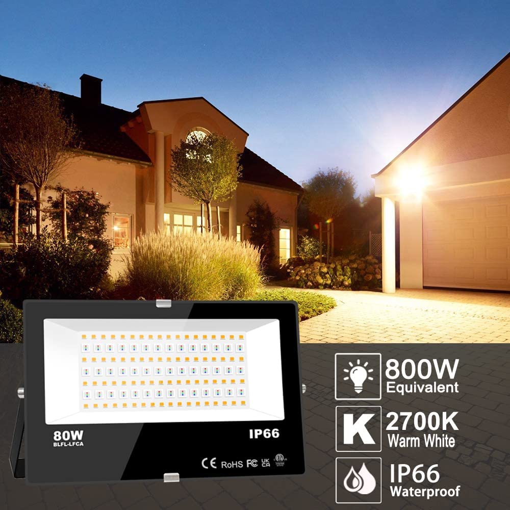 iLC LED Flood Light 800W Equivalent, Outdoor RGB Color Changing, Smart Floodlights RGBW 2700K Warm White & 16 Million Colors, 20 Modes, Grouping, Timing, IP66 Waterproof (2 Pack)