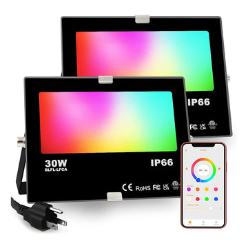 LED RGB with remote control, colour-changing lights, brightness adjustment and 270-degree light bulb.